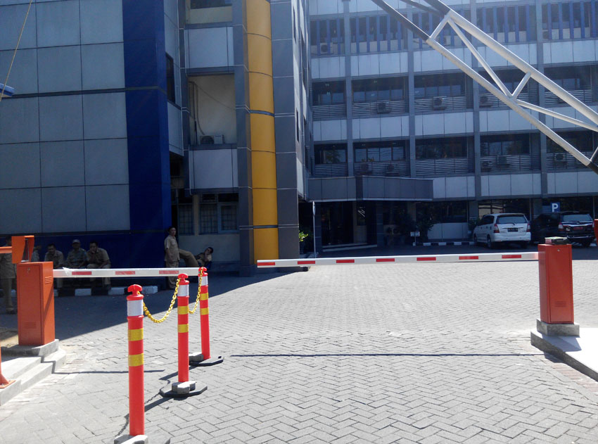 Barrier Gate merupakan alat bantu keamanan yang berfungsi sebagai alat pembatas access keluar/masuk kendaraan ke dalam area parkir/halaman suatu lingkungan gedung atau perusahaan, serta dapat juga difungsikan untuk mengatur traffic flow kendaraan di lingkungan perumahan.